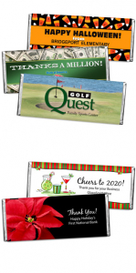 Each individually wrapped Hershey®’s Chocolate Bar (1.55 oz.) arrives labeled with your custom design.