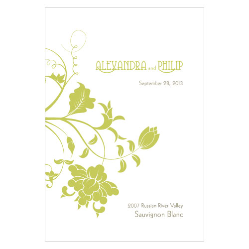 This collection is a vibrant symphony of color. The combination of buds, flowers and foliage results in an eye-catching design. It is versatile enough to be combined with a variety of themes and complimentary colors can easily be mixed and matched. Add personalized flair to your champagne or wine bottles with the Wine Label Sticker. Mix and match with other components in the collection for a cohesive look. material - adhesive label paper imperial - 3.5x5.25"H metric - 8.9cm x13.3cm H. Set up fee $3.95