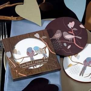 - Love Birds Cork Back Coaster Set in Gift Packaging
