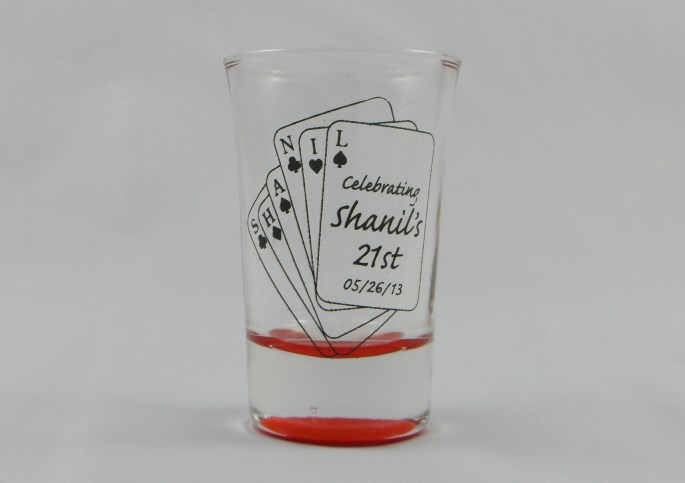 Classic 2 oz Flared clear custom shot glasses imprinted with your unique message, logo, or choice of Clipart. These personalized shot glasses make excellent special event gift or wedding favor parties.