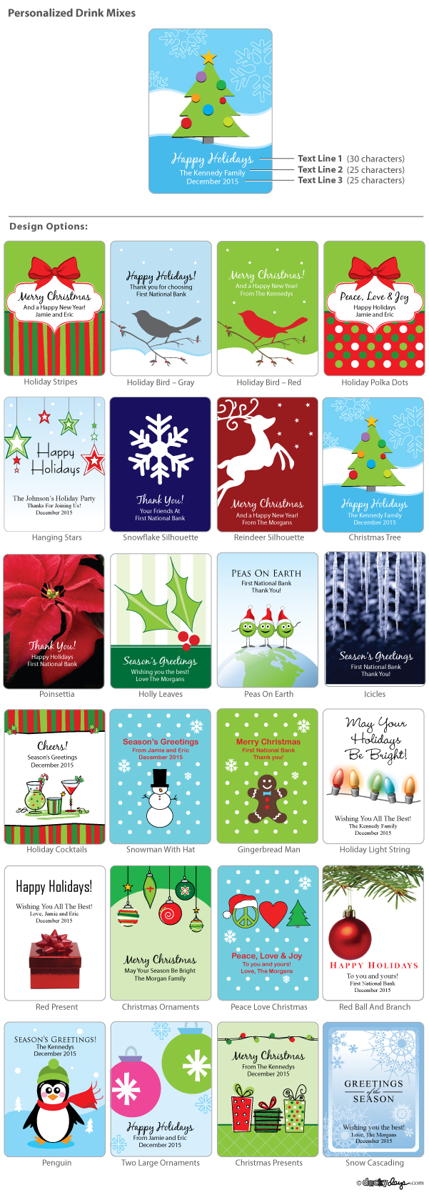 Deliciously decedent gourmet hot cocoa. Each single serving of drink mix comes sealed in a beautiful white gloss pouch (4"w x 5.5"h) that contains 1.25 ounces of the powder drink mixture. Instructions are on the back on how to mix the pouch contents to create an irresistible indulgence. Easy assembly with self-adhesive labels.