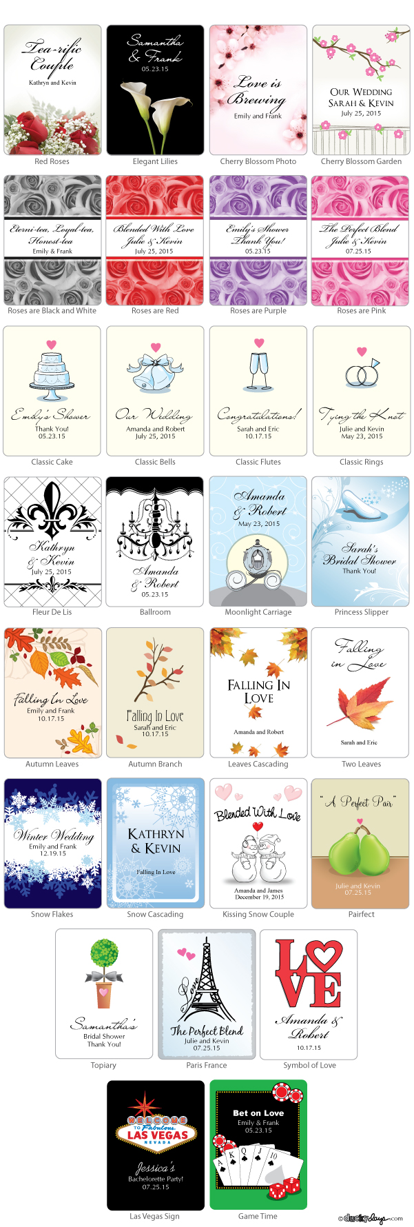 Tea is becoming the "in" drink of this decade. For brides and grooms looking to give their guests something unique by which to remember the happy occasion, personalized tea favors are a "Tea-rific" way to say thank you for sharing in our special day.